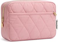 Cosmetiktas met gepersonaliseerd logo, groot, roze, draagbaar, zacht gewatteerd, voor dames.