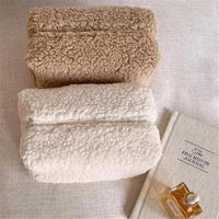 Bonita bolsa de maquillaje de felpa, bolsa de cosméticos portátil para viaje, bolsa de almacenamiento suave y esponjosa, bolsas de maquillaje para mujer