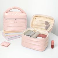 Kadınlar için kabarık seyahat makyaj çantası dahili cepler ile hafif su geçirmez makyaj organizatör katlanabilir kozmetik çantası