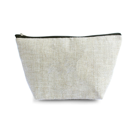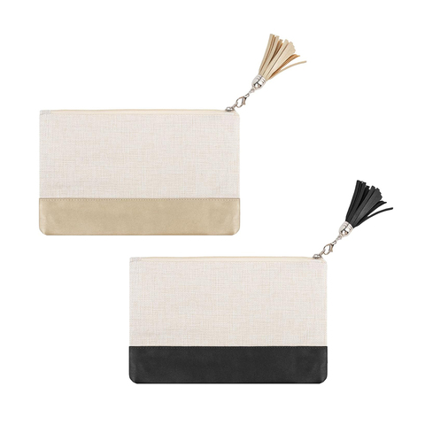 กระเป๋าเครื่องสำอางแบบดึงซิปผ้าลินินแต่งพู่โลโก้ได้ตามต้องการ