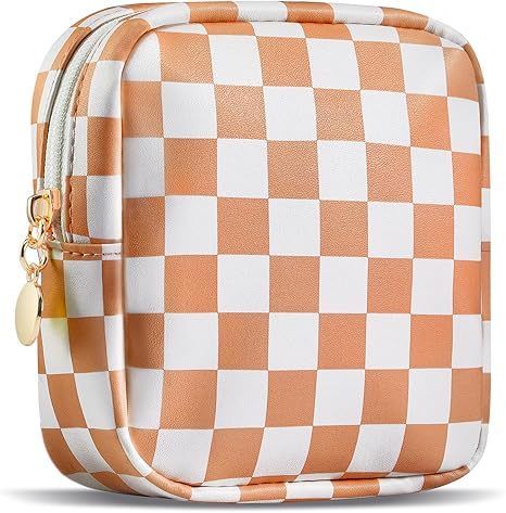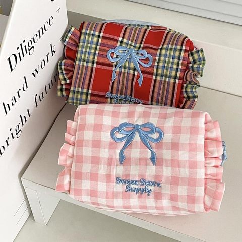 กระเป๋าแต่งหน้าขนาดเล็กสำหรับผู้หญิงกระเป๋าเครื่องสำอางลายตารางขนาดเล็กมีซิป