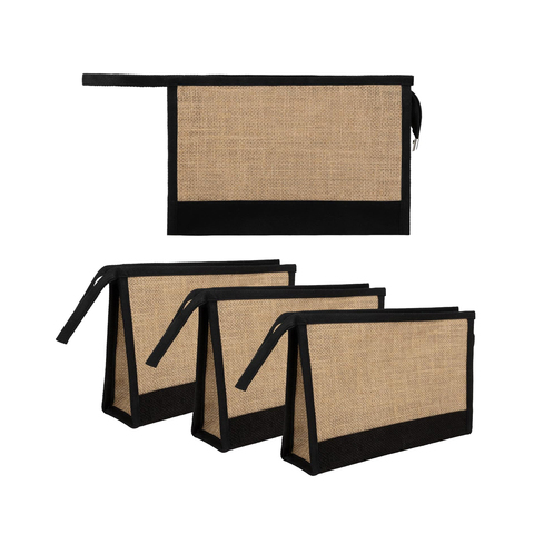 กระเป๋าเครื่องสำอางผ้ากระสอบแบบมีสายคล้องข้อมือใช้เดินทางแบบทูโทนโลโก้ได้ตามต้องการ