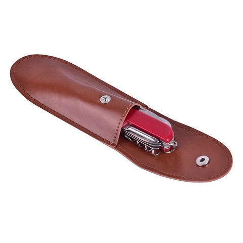 ที่เก็บมีดพับได้แบบพกพาสำหรับกลางแจ้งทำจากหนัง PU สีน้ำตาลใช้ใส่โลโก้ได้ตามต้องการ